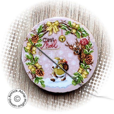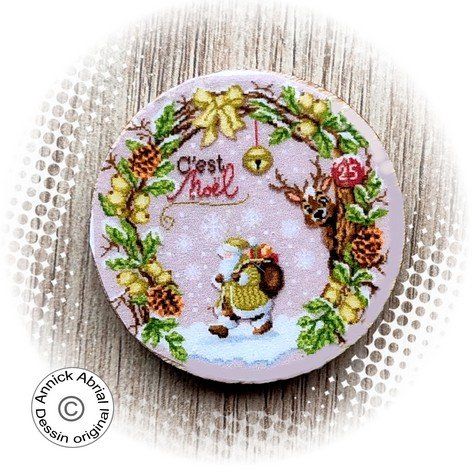Cet aimant porte aiguilles de 4 cm de diamètre est issu d’un dessin original représentant une magnifique couronne de Noël, délicatement mise en scène dans un décor enneigé. Au cœur de l’illustration, un beau Père Noël s’apprête à partir distribuer les cadeaux, tandis qu’un renne malicieux se cache derrière les branchages, ajoutant une touche de tendresse et de fantaisie à l’ensemble. Chaque détail évoque la douceur, la joie et la magie des fêtes de fin d’année.