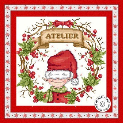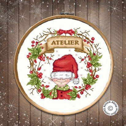A l'approche de Noël l'atelier des lutins est en effervescence. C'est un lieu unique, accueillant, paisible et joyeux, un havre de paix ou règnent l'imaginaire et la créativité. Brodez cette magnifique couronne pour que la magie de Noël s'installe dans votre demeure !