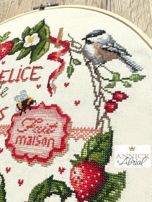 Plongez dans l’univers savoureux de la broderie avec notre modèle exclusif Délice de fraises. Ce dessin original met en scène de délicieuses fraises et des fleurs prêtes à révéler leurs merveilleux fruits. Imaginez un dessert succulent et une bonne confiture à la fraise le tout délicatement encadré par une fine dentelle portant l’étiquette "Fait maison".